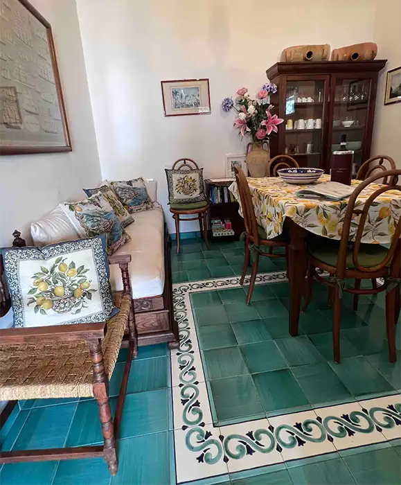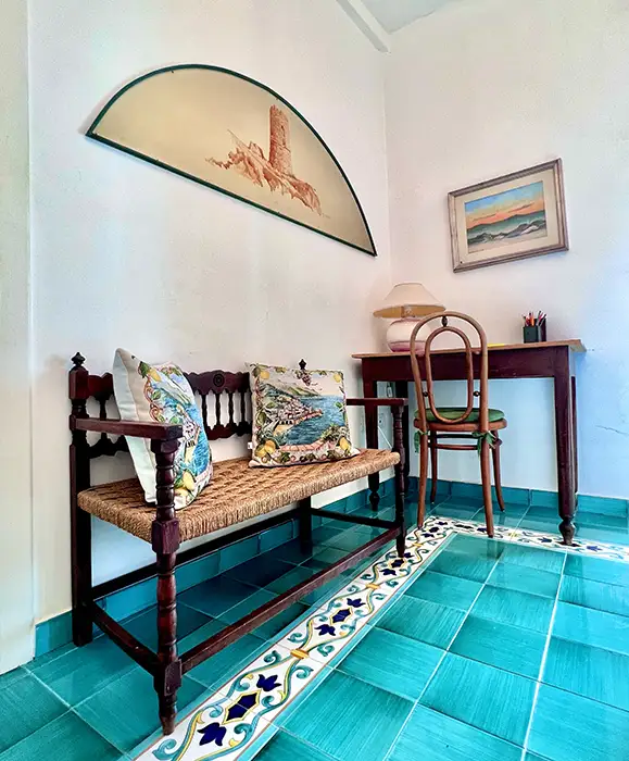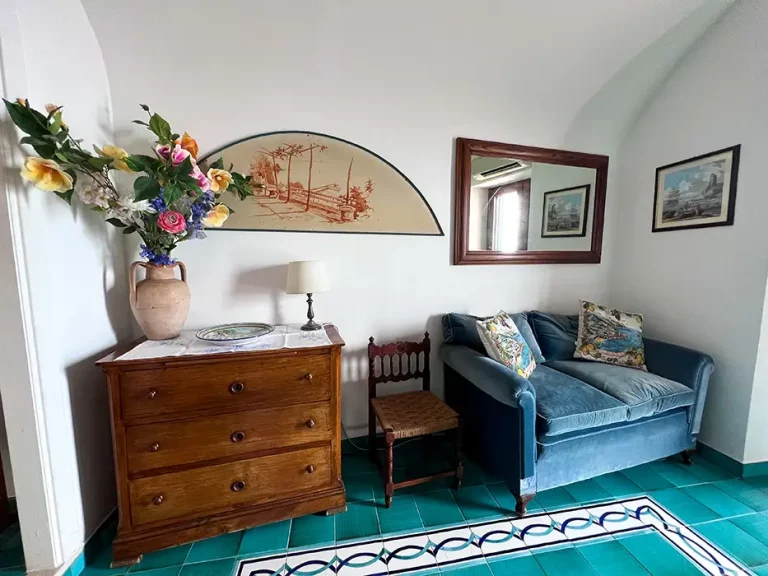 The furnishings are all antique and come from the historic Hotel Cappuccini Convento Amalfi.